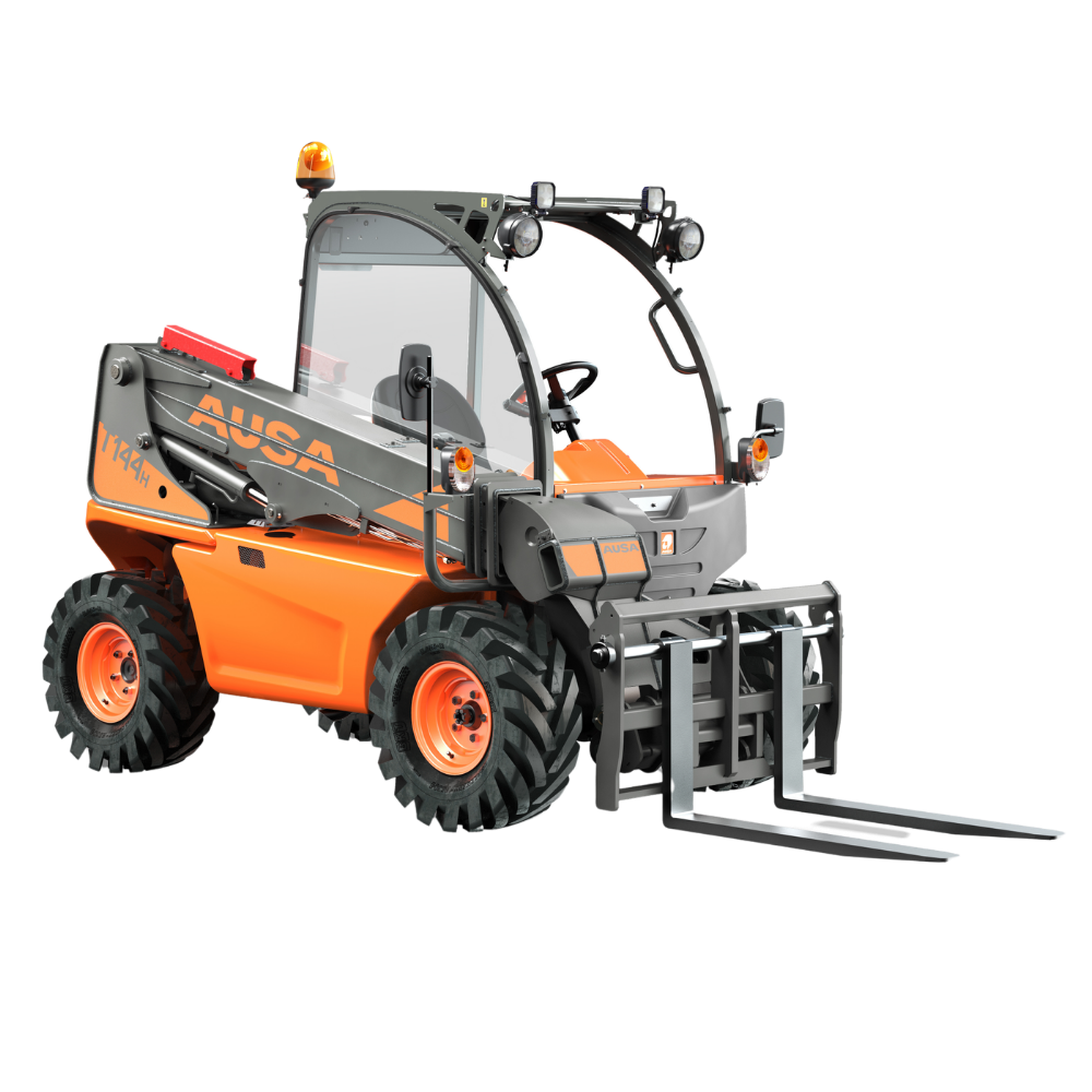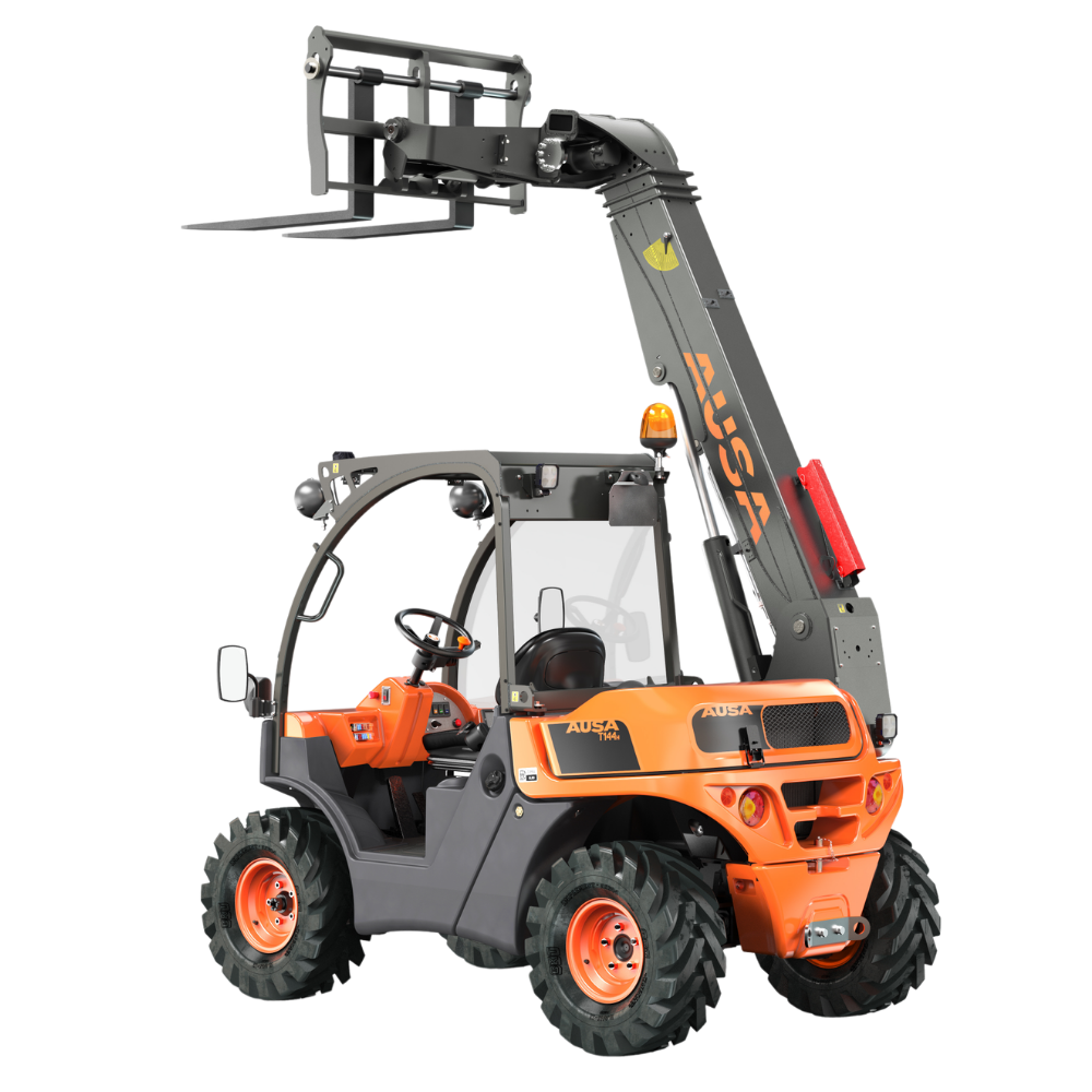 The AUSA T 144 H F2 is an ultra-compact telehandler built for working in tight, restricted environments where space is limited but performance is still essential. With a 1.4-ton lift capacity, it provides an efficient and practical solution for light-duty lifting, loading, and material placement tasks.