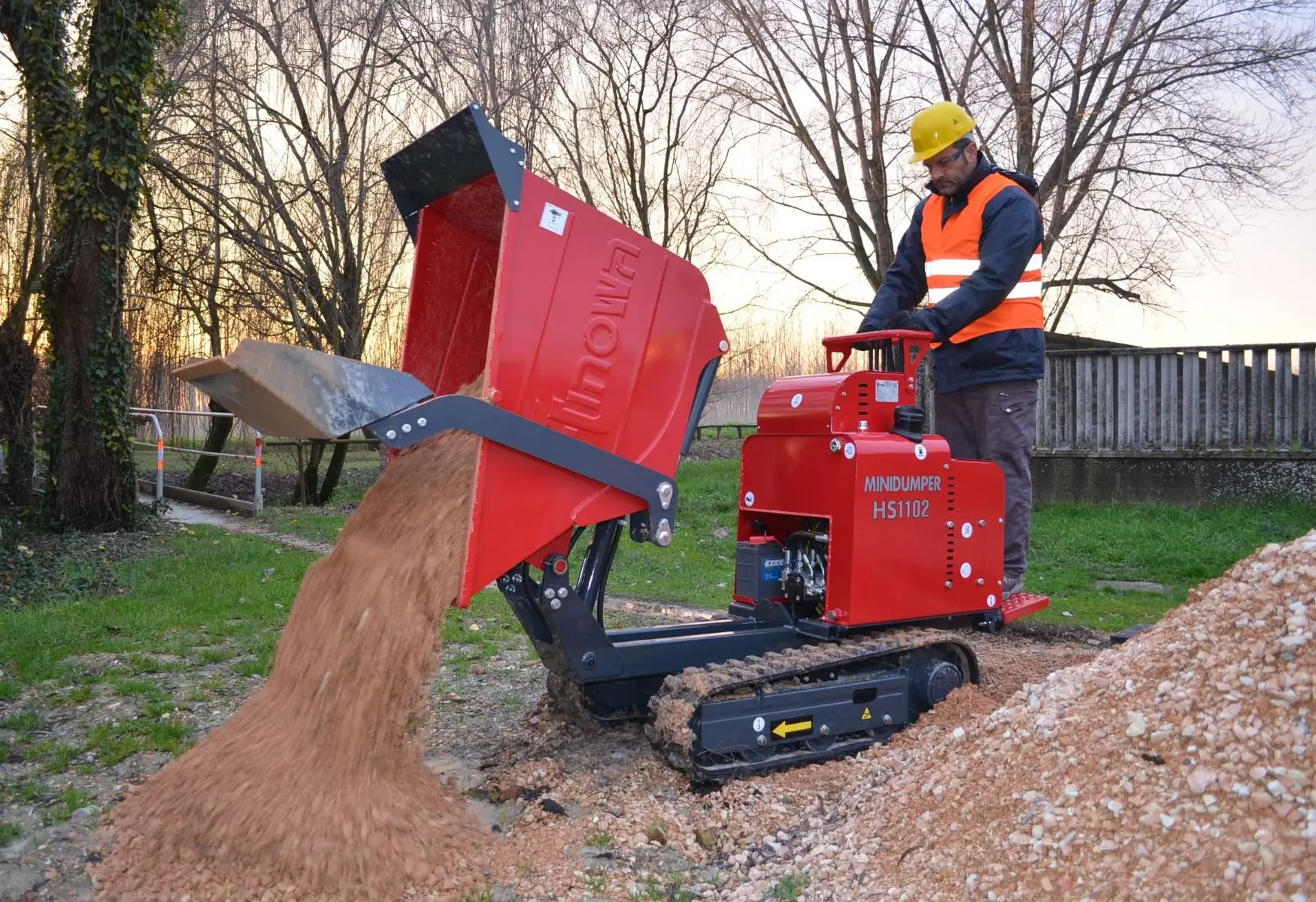 The Hinowa HS1102 is a robust and reliable mini dumper, made of a high resistance steel plate, and available with either a Honda petrol or Yanmar diesel engine.