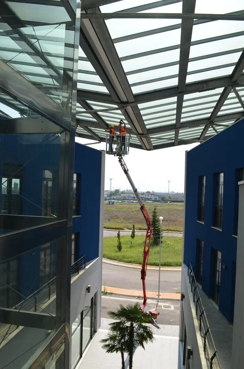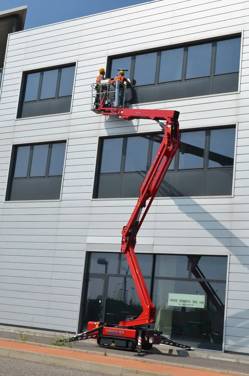 The Hinowa Lightlift 20.10 spider boom provides a working height of up to 20.1m and a maximum horizontal outreach of 9.7m. Its exceptional lift capacity of up to 230kg can accommodate two people with tools, further increasing productivity. Available with a diesel engine combined with a mains electric power of 110 or 220V, or with a lithium battery for pollution-free operation.
