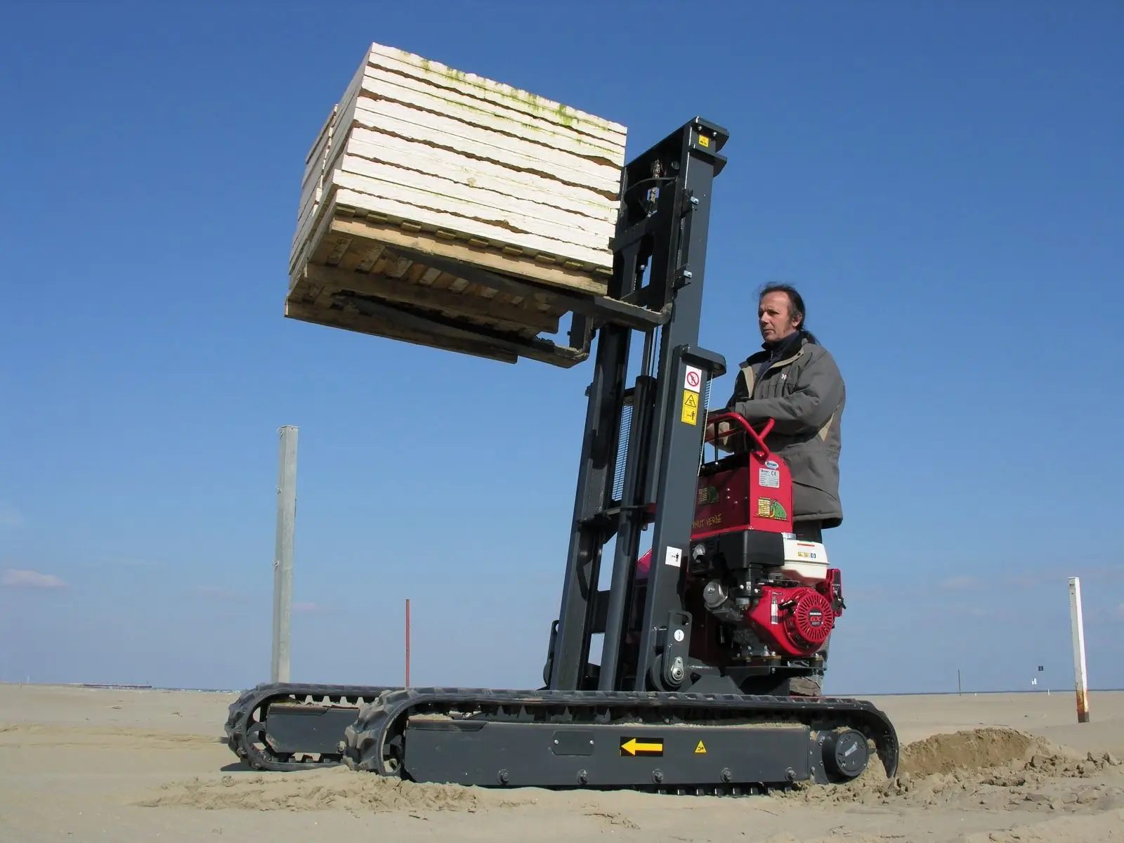 The Hinowa TP1800 tracked forklift is designed to work on soft or uneven terrain such as gravel, snow and sand, making it an ideal machine for heavy lifting.