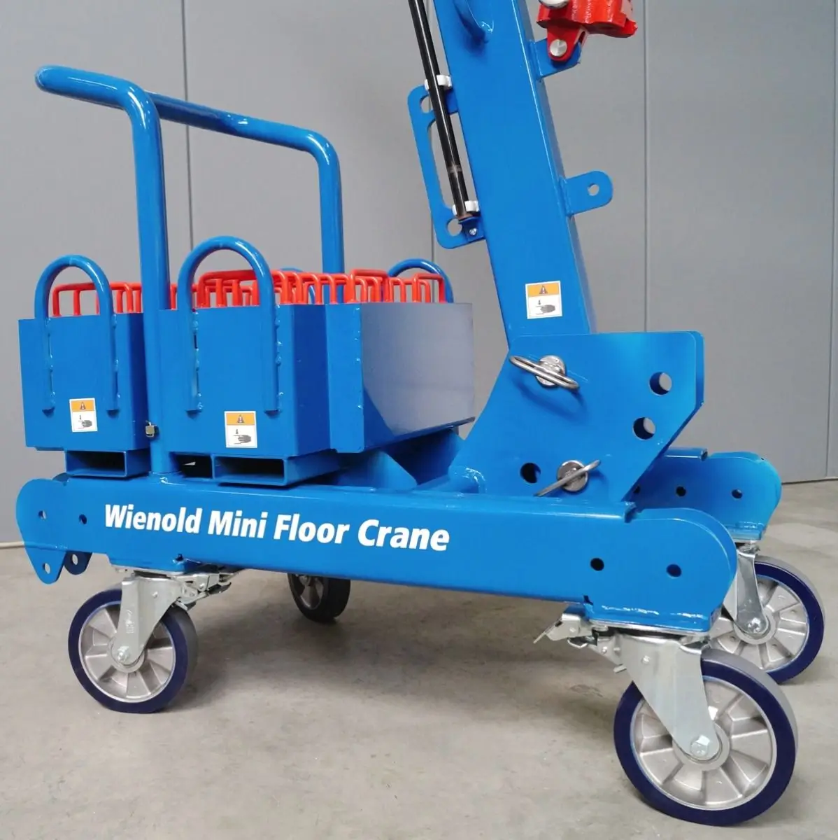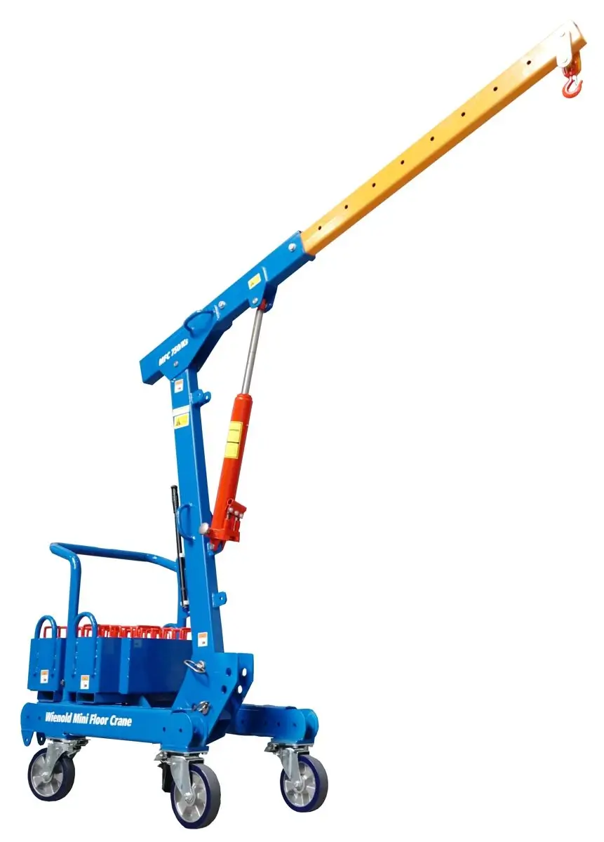 The Wienold Mini Floor Crane (MFC) K model is designed to suit a range of indoor and outdoor applications. It features two reverse-mounted outriggers with counterweight boxes for extra stability, and can lift loads of up to 900kg to a height of 2.90m.
