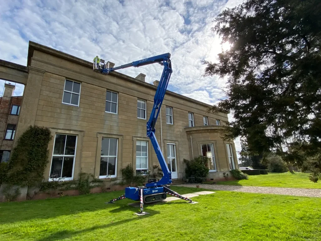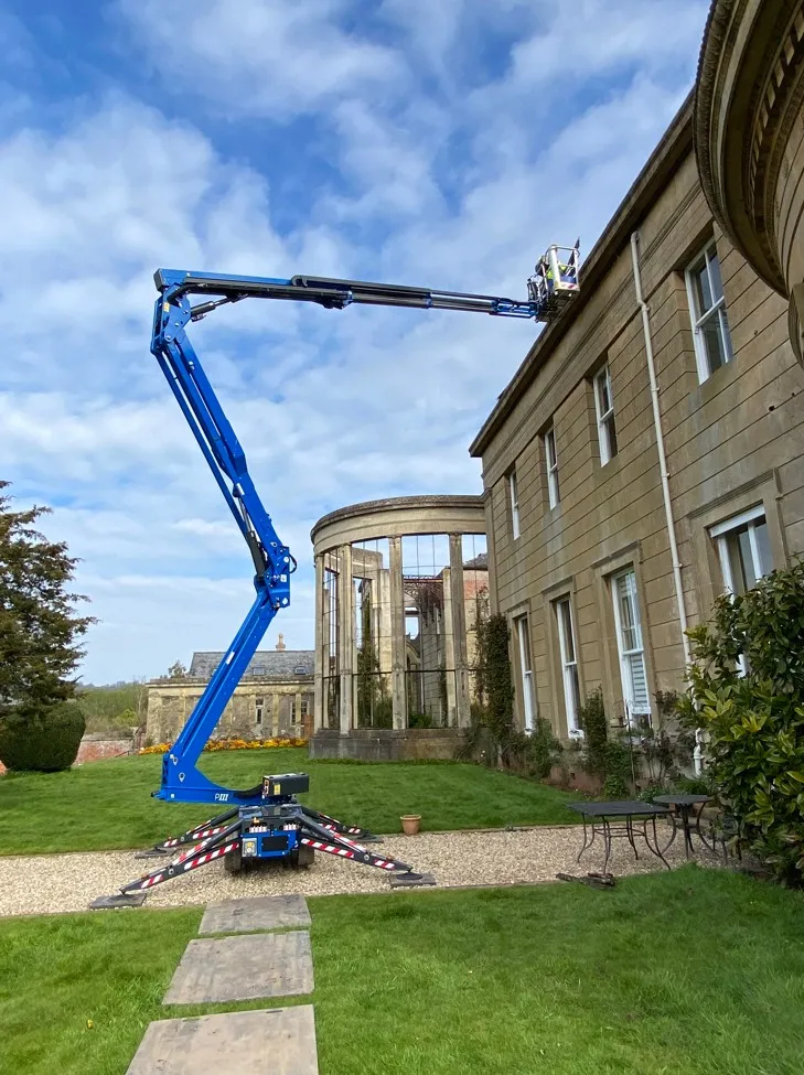 The Worcester-based company has also taken delivery of a new Hinowa Lightlift 20.10 spider lift, putting it to good use on a maintenance project at a Grade II listed Greek Revival country house.