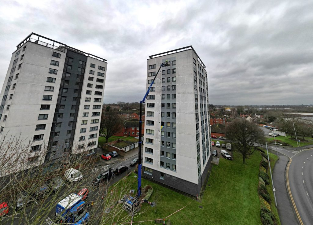 Days later, they demonstrated the advantages of its 40.2m maximum working height to clean windows on a 12-storey residential tower block in Worcester.