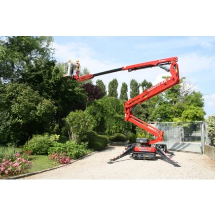 The Hinowa Lightlift 17.75 also has a platform load capacity of 230kg available without restriction throughout its working envelope. This high-performance tracked boom offers a working height of up to 17m, a maximum outreach of 7.5m, and features a dual pantograph lifting mechanism which allows it be used flush against a wall.